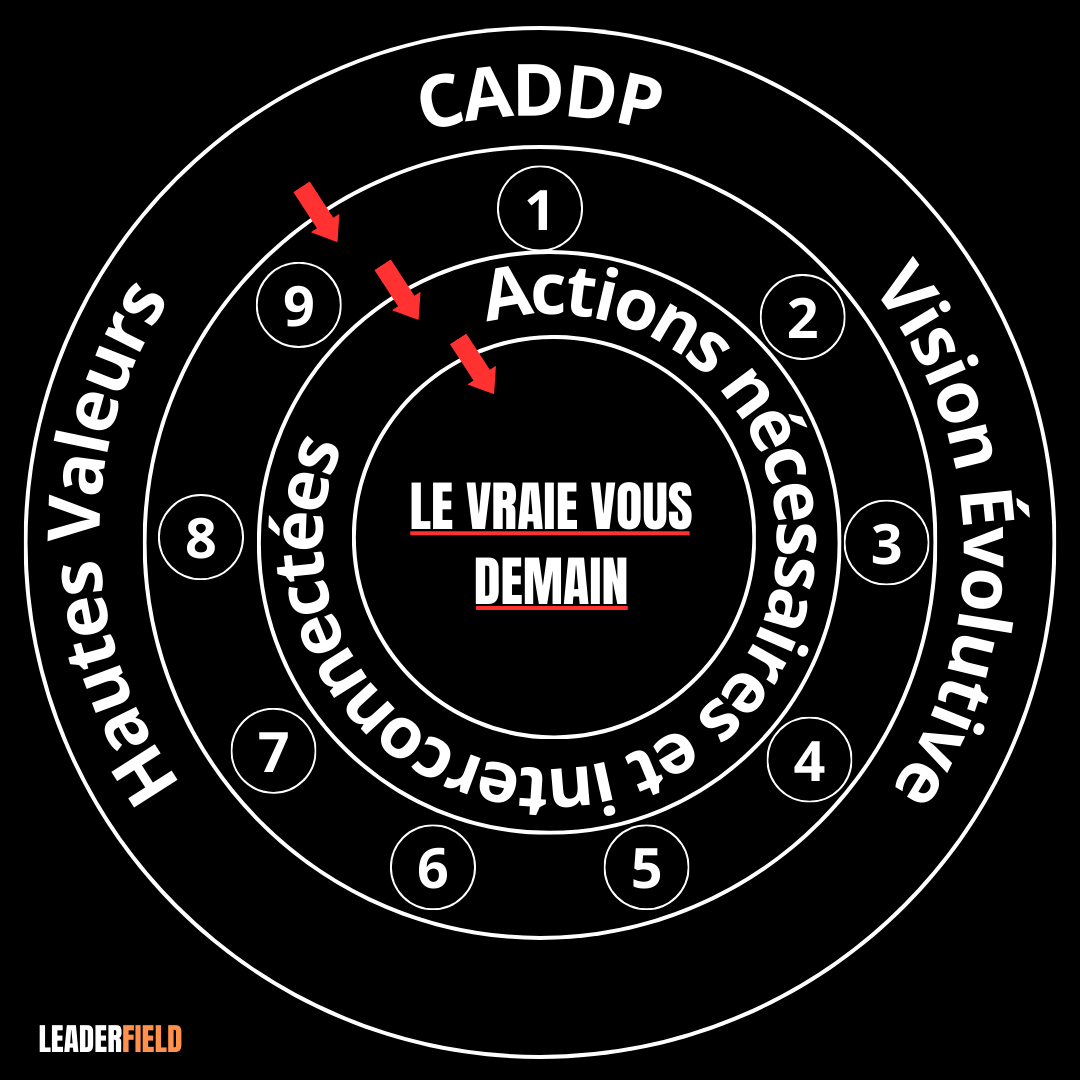 La vision évolutive : notre vision est une image claire de ce que nous voulons atteindre et vivre. Elle nous inspire et nous motive à avancer. Je dis toujours “évolutive” car notre vision peut être modifiée grâce à notre avancement et après une réflexion consciente.